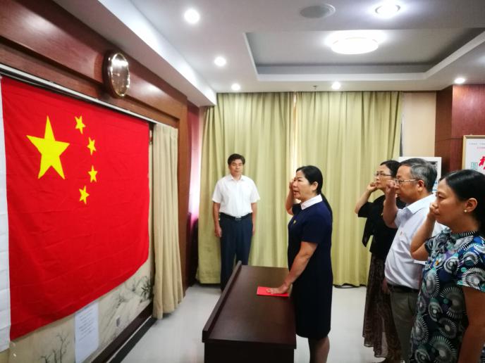 儀式上,出席人員全體起立,齊唱中華人民共和國國歌,熊曉蕾、楊樺、趙小春和石宇坤4位新任職的正處級干部面向國旗,高舉右拳,向憲法許下錚錚誓言:“我宣誓:忠于中華人民共和國憲法,維護(hù)憲法權(quán)威,履行法定職責(zé),忠于祖國、忠于人民,恪盡職守、廉潔奉公,接受人民監(jiān)督,為建設(shè)富強(qiáng)民主文明和諧美麗的社會主義現(xiàn)代化強(qiáng)國努力奮斗!”