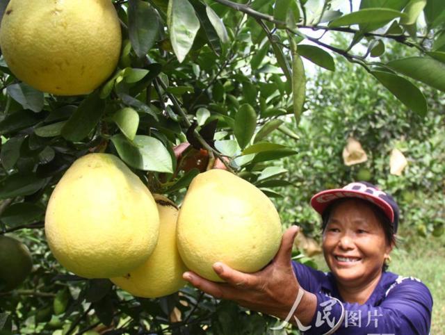 1.2018年9月18日,江西省泰和縣禾市鎮(zhèn)萍芫村生態(tài)無公害井岡蜜柚種植基地,果農(nóng)正在采摘井岡蜜柚。 金秋時(shí)節(jié),江西省泰和縣萬畝井岡蜜柚“金果”滿枝,迎來采摘季。近年來,江西省泰和縣按照“規(guī);、標(biāo)準(zhǔn)化、生態(tài)化、品牌化”的綠色發(fā)展思路,大力發(fā)展井岡蜜柚富民產(chǎn)業(yè),井岡蜜柚已成為當(dāng)?shù)剞r(nóng)民脫貧致富的“搖錢樹”。截至目前,該縣井岡蜜柚種植面積達(dá)5.13萬畝,掛果面積逾萬畝,建立百畝以上種植基地73個(gè)。今年預(yù)計(jì)可實(shí)現(xiàn)產(chǎn)量270萬公斤,收入1600多萬元。 (司馬天民/人民圖片)
